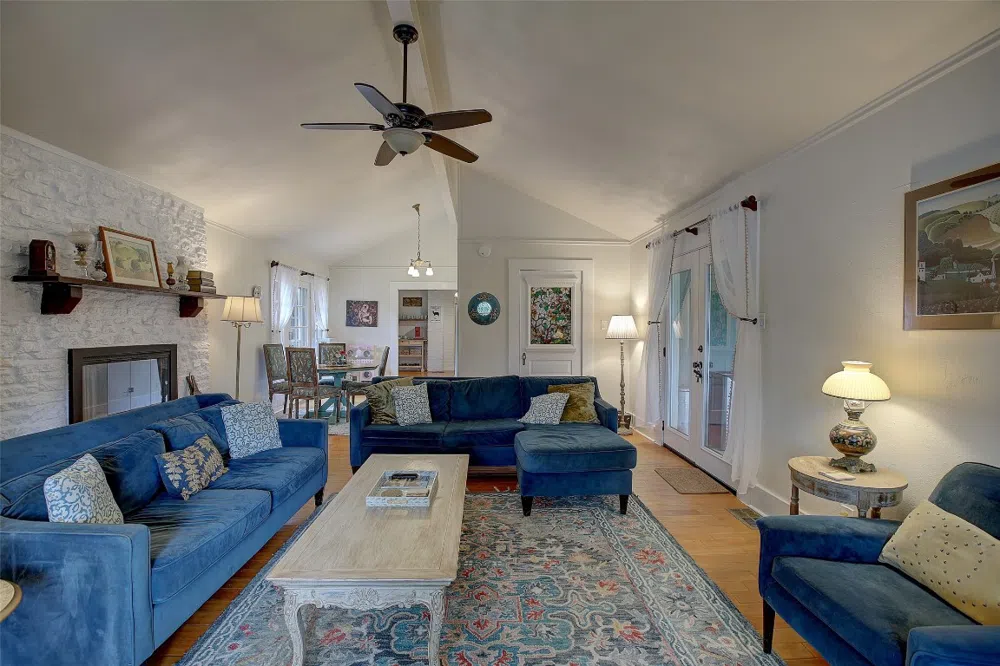 This enchanting 1920s historic home blends original craftsmanship with modern updates, offering incredible charm and potential on a spacious .428-acre corner lot. Built by C. S. Griffith of the Griffith Lumber Co., it retains its character with refinished original wood floors and newer matching flooring in the 1940s addition. Boasting 2-3 bedrooms on the main floor and 1 versatile upstairs room, the home also features a fully updated kitchen, two full baths (one with a clawfoot tub), a gas fireplace, and formal living and dining rooms. Enjoy the outdoors with a screened-in balcony, covered patio, and beautiful mature trees. The one-car garage includes a shop with ample under-house storage, a solid-surface deck, and stairs leading to the backyard. Modern updates include a 2023 Lennox A/C replacement, recent exterior paint, and a car charger. Located within walking distance to Southwestern University and the "Most Beautiful Town Square in Texas," this home offers an extraordinary blend of history and modern comfort.